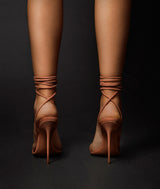 Beyond barely there, the Sesso with its refined, feminine aesthetic, takes sex appeal in a sandal, to its pinnacle. Featuring ultra slim lace strapping, vertiginous solid steel spike heels, butter-soft kid suede and 9ct gold plated hardware.